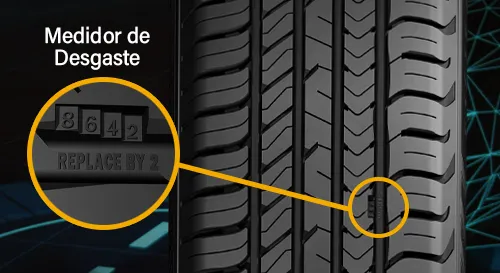 O Eagle Sport 2 se destaca também por contar com a tecnologia Wear Gauge, um indicador visual de desgaste inovador que permite acompanhar, de forma prática, o nível de uso do pneu até o limite de 1,6 mm (TWI - sigla para o termo em inglês Tread Wear Indicator, que em português significa Indicador de Desgaste da Banda de Rodagem). Essa tecnologia reflete o compromisso da Goodyear em oferecer soluções que unem performance e consciência no uso dos recursos, tanto nas pistas quanto nas ruas.