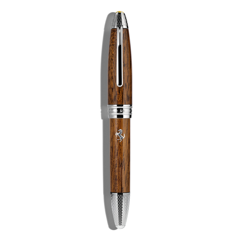 O icônico Cavalo Rampante, sutilmente integrado ao corpo, representa uma empresa fundada a partir dos sonhos de um homem, Enzo Ferrari. O emblema Montblanc, símbolo do compromisso contínuo da Maison com os mais altos padrões de qualidade e artesanato, ocupa sua posição tradicional na tampa, e sua cor amarela é uma homenagem ao berço da lenda da Ferrari: Modena, na Itália.