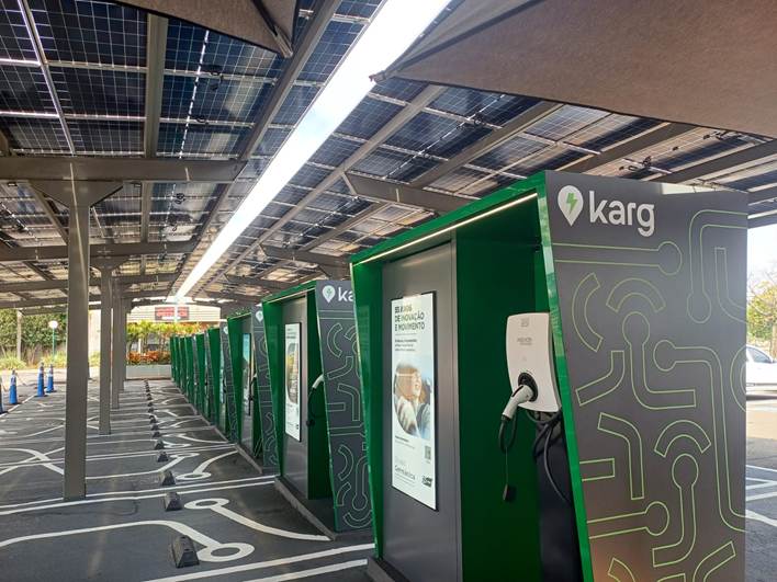 Instalação conta com 20 pontos de abastecimento para carros elétricos, todos em área coberta e alimentados por energia solar.